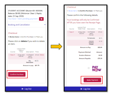 Proceed to Booking and Cancellation> Booking Records to confirm booking upon payment.