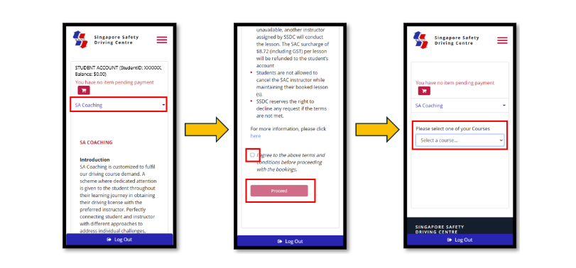 - Select SA Coaching> tick the checkbox> Proceed> Course.
